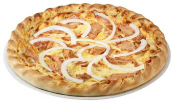 Tomatensauce, Zwiebeln, saftiger Thunfisch und Käse