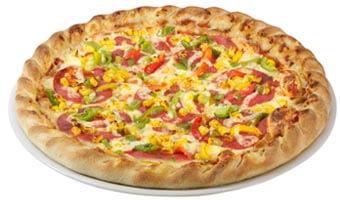 Tomatensauce, Rindersalami, Paprikagemüse, Mais und Käse